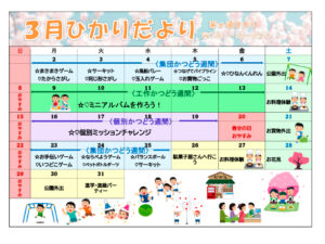| 開所日・開所時間 | 月曜日~土曜日(祝日・年末年始除く) 平日:学校終了時~17時 学校休業日、長期休暇:10時~16時 上記を基本とし、時間は応相談となります。 |