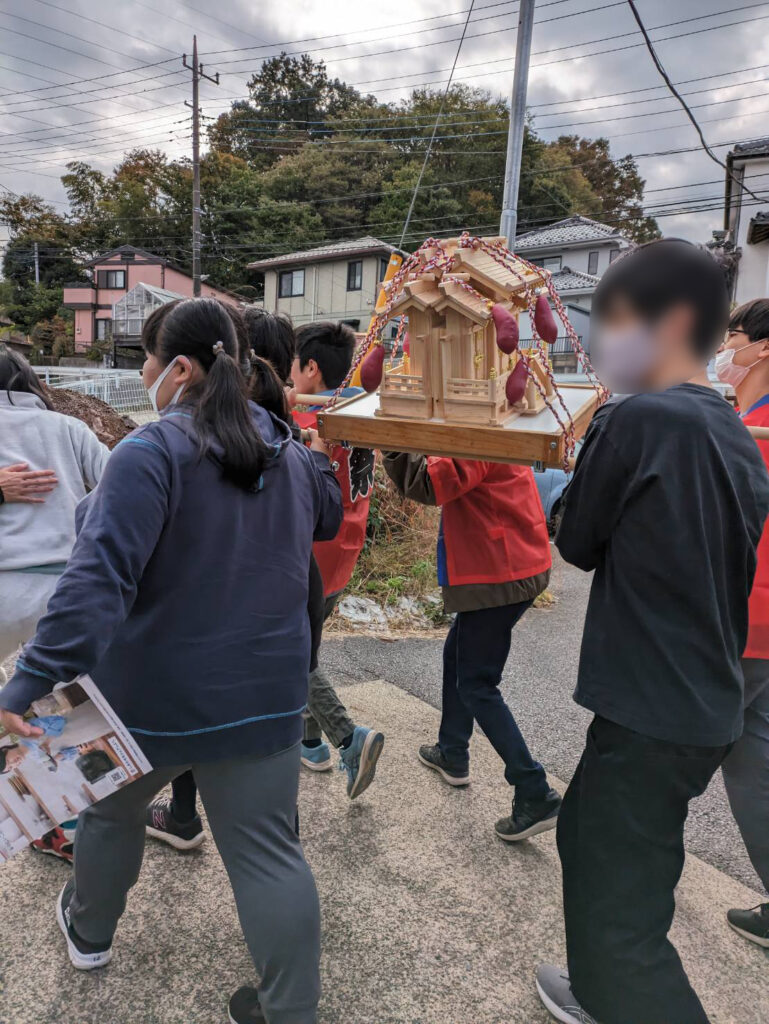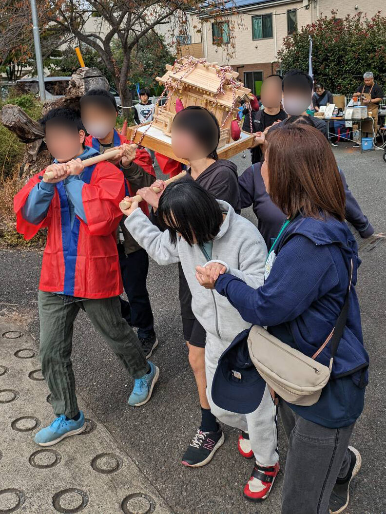利用者のみんなと一緒に「ワッショイ!」と大きな声を掛けながら担ぎました。