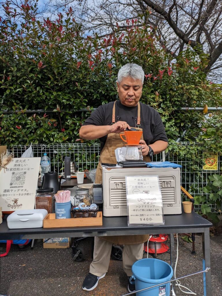 敷地入口に設置した受付横では、道行く人たちを引き付ける芳醇な香りを放つこだわりの焙煎コーヒーが販売されました。深煎り、浅煎りの2種類が選べ、特に浅煎りの淹れたてコーヒーはコーヒーが苦手な方にも好評で、秋晴れの中で癒しのひとときとなりました。