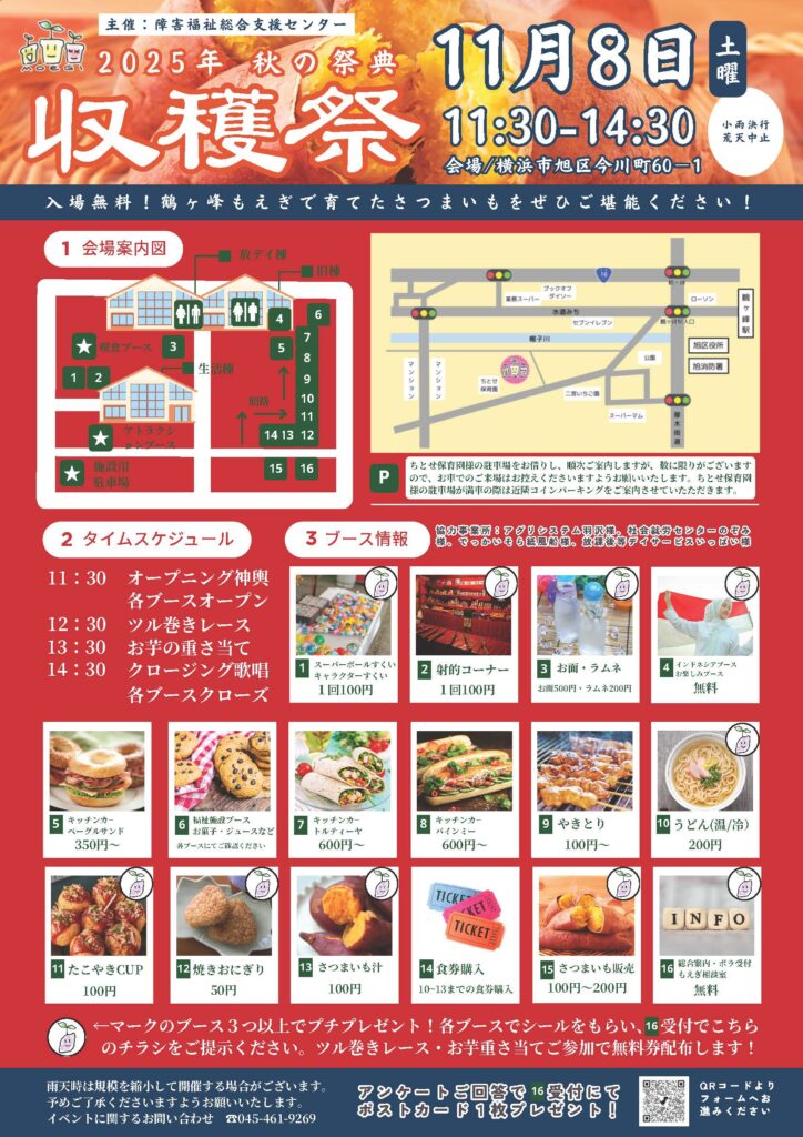 2025年11月8日(土)神奈川県横浜市旭区にある障害福祉総合支援センターにて、秋の収穫をお祝いするイベント『収穫祭』を開催いたしました。
