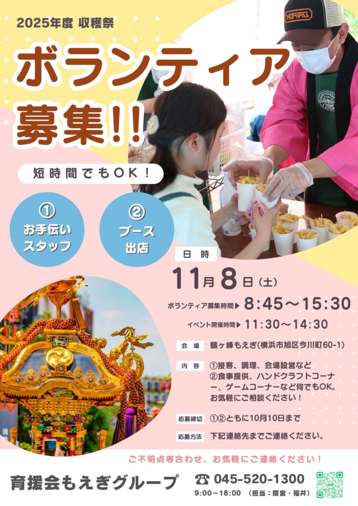 収穫祭 ボランティア募集のお知らせ|育援会もえぎグループ 11月8日(土)