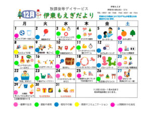 | 開所日・開所時間 | 月曜日~土曜日(祝日・年末年始除く) 平日:学校終了時~17時 学校休業日、長期休暇:10時~16時 上記を基本とし、時間は応相談となります。 |