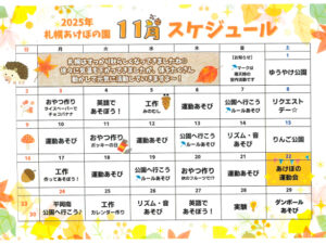 札幌あけぼの園:平日~土曜日・祝祭日 札幌あけぼのドレミ♪:平日~土曜日・祝祭日 平日:学校終了時~17時 学校休業日、長期休暇:10時~16時 上記を基本とし、時間は応相談となります。 |
