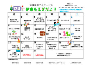 | 開所日・開所時間 | 月曜日~土曜日(祝日・年末年始除く) 平日:学校終了時~17時 学校休業日、長期休暇:10時~16時 上記を基本とし、時間は応相談となります。 |